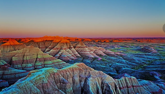 Badlands National Park, located in southwestern South Dakota, is renowned for its striking landscapes of eroded buttes, pinnacles, and spires, set against expansive mixed-grass prairies. The park spans over 244,000 acres and is home to a diverse array of wildlife, including bison, bighorn sheep, and prairie dogs. Rich in fossil beds, the Badlands offer significant paleontological resources, revealing ancient mammal bones from the Oligocene epoch. Visitors to the park can enjoy scenic drives, hiking trails, and opportunities for stargazing, making it a popular destination for nature enthusiasts and photographers alike.